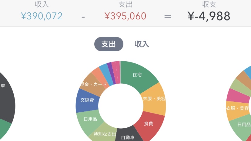 今月は、収支-4,988円でした。休日出勤の頑張りで給料も多めでしたが、支出も増えていたので😅