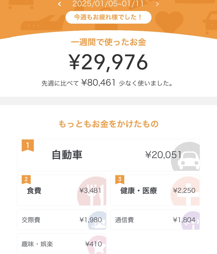 交際費/小遣い まる夫:5,303円(妻の誕プレ)