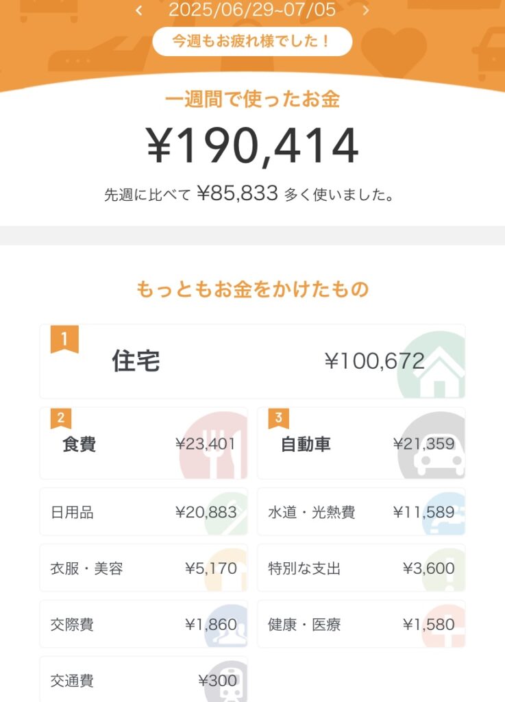 7月にはいつもの支出以上に固定資産税や火災保険の支払い等住宅の支払いが嵩みます。