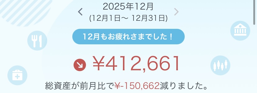 2025年も遂に年末になりました。今年は夫婦で転職もあり義両親の入院手術等があり例年とは大幅に異なる収支になりました。まる夫も転職でバタバタしてしまい。ブログの更新ができずあっという間に時がすぎてしまいましたが、取り敢えず家族皆が元気に年明けを迎えれたので、また来年から頑張ります👍
