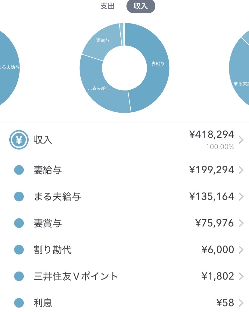 まる夫は転職して2ヶ月なのでまだ賞与ありません。妻の会社は試用期間はボーナスの査定期間に入らない為、満額ではないです。割り勘代は先月のライブの交通費の半分です。