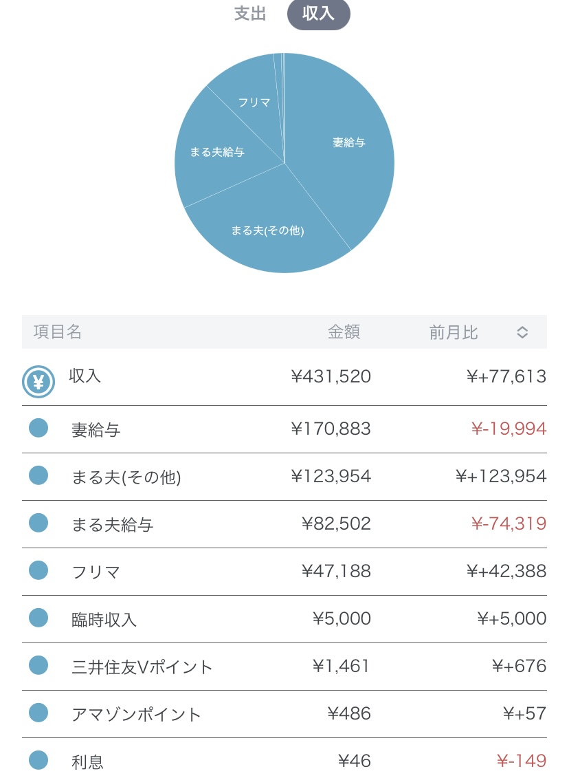 今月は、収支でした。今月は退職金やフィギュアの売却で収入が多めなのもありましたが家電等の分割払いが払い終わったので支出が減少してきました🥰