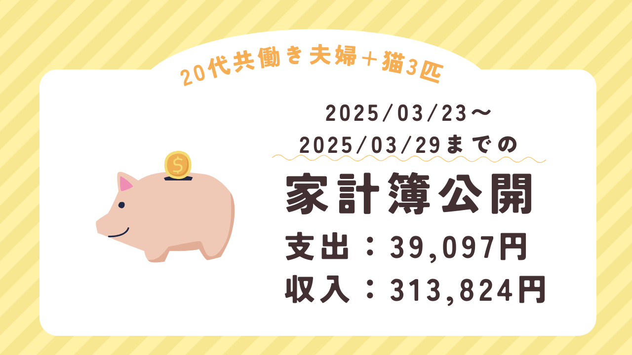 2025/03/23〜2025/03/29までの20代共働き夫婦+猫3匹の家計簿公開[妻の退職金受け取り]
