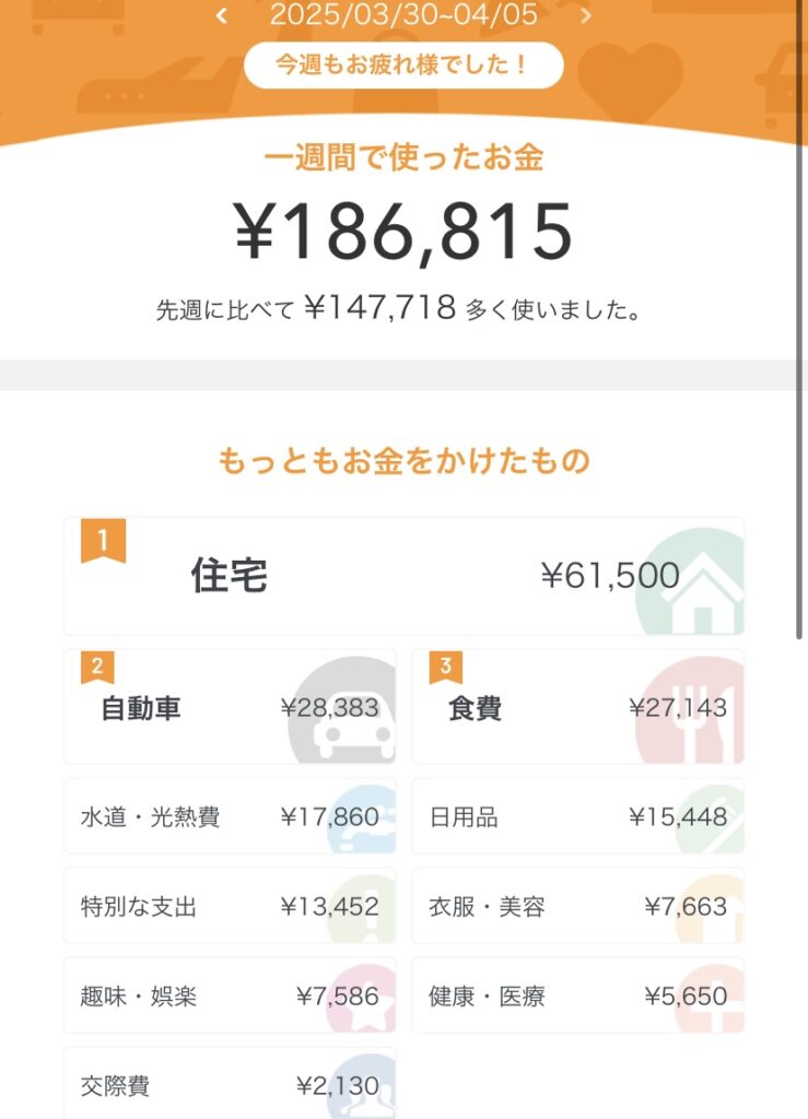 毎月一日は、ローンの支払いや買い足しなどが多く支出が多いです。